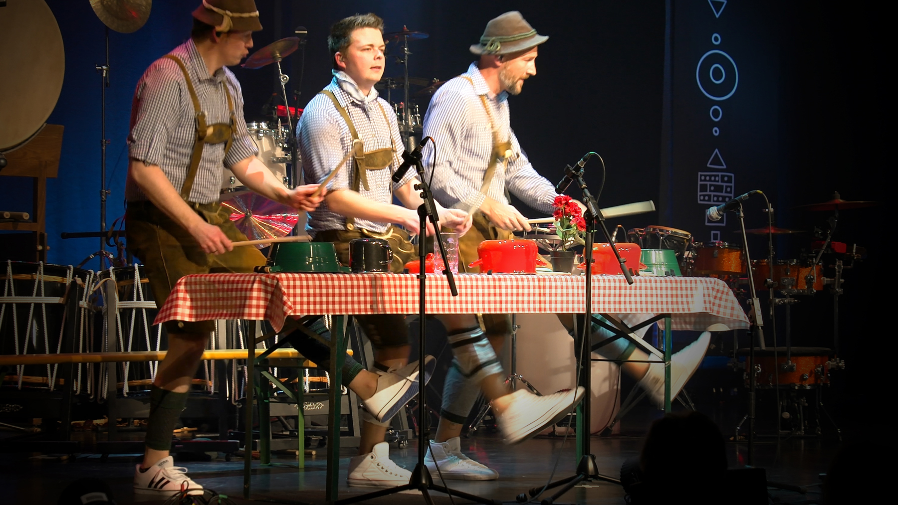 Mit ihrem Markenzeichen, den Aluleitern, mit großen Trommeln, LED-Drums und optischen Special-Effects wie LED-Sticks und Waterdrumming begeistern die Entertainer das Publikum …